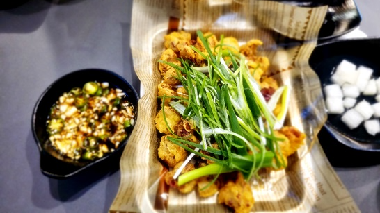 'Park Pro Chicken' offers a diverse menu. From classic fried chicken to unique dishes like Gochu Tangsuyuk (sweet and sour pork with peppers), Kimchi Cheese Tangsuyuk, crispy fried Gizzard, original Takoyaki, Odeng Tang (fish cake soup), Muktay (seasoned dried pollack), to fries - there's something for everyone. I ordered the crispy fried Gizzard, fries, and soy sauce chicken.