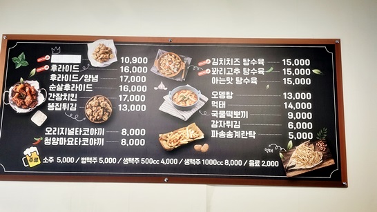 후라이드치킨, 꽈리고추 탕수육, 김치치즈탕수육, 똥집튀김 등을 맛볼 수 있어요.