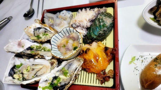 물회, 계란찜, 소라, 꼬막 등 다양한 해산물이 준비되어 있으며,
