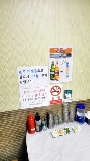 내부는 금연이며, 쌈은 요청 시 제공됩니다.