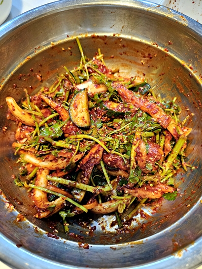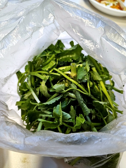 함께 제공되는 미나리를 잘 무쳐서 드시고 소면이 있으면 같이 조화롭게 즐기면 감칠맛이 더욱 살아납니다.