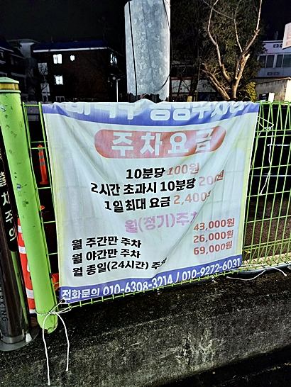 주말과 공휴일을 제외한 평일에는 21시까지 주차 단속이 있으니, 인근 공영주차장을 이용하는 것이 안전합니다.