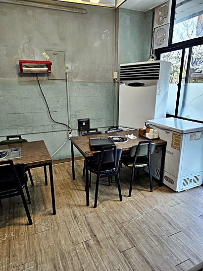 점심엔 정식 손님, 저녁엔 고기 굽는 연기가 반기는 동네 고깃집 분위기입니다.