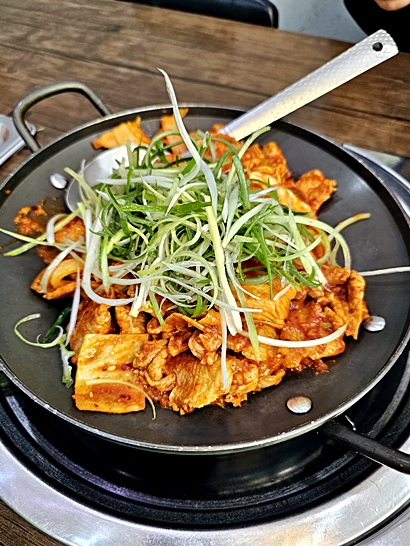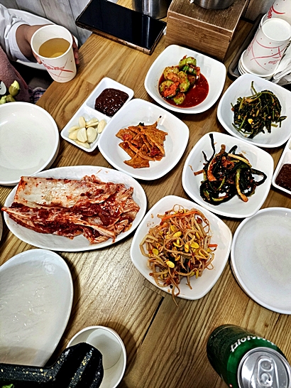 This is a review of a restaurant called Yukaehansang in Hansoldong, Sejong. It is my family’s favorite place for pork belly and Korean side dishes. The restaurant is located in the First Village apartment complex with easy access and simple parking in the basement or nearby public lots. Opening hours are 11 am to 10 pm on weekdays with a break time from 2:30 pm to 5 pm, 4 pm to 10 pm on Saturdays, and closed on Sundays. The main menu includes fresh pork belly 150g for 16,000 won, frozen pork belly 100g for 8,000 won, pork stir fry for 13,000 won, squid and pork stir fry for 13,000 won, and lunch options like kimchi stew, army stew, and cheonggukjang for 11,000 won. There is also a large rolled omelet for 7,000 won which is very popular with children. Side dishes change with the seasons and are always fresh. The restaurant offers bean sprout salad, kimchi, cucumber kimchi, seasoned vegetables, and soup like doenjang jjigae. The rolled omelet is my daughter’s favorite and goes well with pork belly or green onion salad. Pork stir fry at lunch is a good choice with rice. A special tip from regulars is to enjoy fried rice at the end. Staff usually prepare it with pork, kimchi, bean sprouts, sesame oil, and seaweed, but regulars cut the meat and vegetables smaller and let them simmer before mixing with rice. This makes the taste deeper and staff often give extra rice when they see guests doing it themselves. If the seasoning is salty, adding plain rice balances the flavor. The restaurant has 4 person tables that can be joined for groups. The atmosphere is simple and family friendly. Service is kind and food comes quickly. The best points are the quality of the pork, generous side dishes, and the taste of stew and omelet. The price is reasonable for the amount and quality. The only caution is the Sunday holiday and weekday break time, so plan your visit accordingly. Overall this place is a top choice for pork belly in Sejong. It is reliable, tasty, and comfortable for family meals. My one line summary: In Hansoldong, Yukaehansang is the first choice for pork belly. My score is 4.7 out of 5 and I will keep coming back with my family.