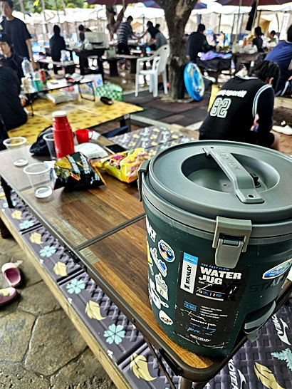 필수 준비물: 돗자리, 접이식 상(테이블), 아쿠아슈즈, 수모.