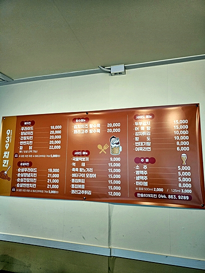 세종 한솔동에서 튀김과 치킨이 당긴다면 939치킨 호프를 추천합니다.