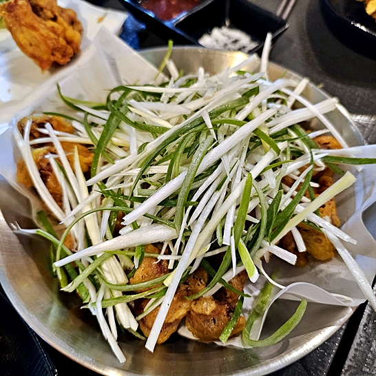 I visited 939 Chicken Hof in Hansol-dong, Sejong, a place I have known since it first opened about two years ago. The restaurant has improved over time, and the taste keeps getting better. The atmosphere is casual and friendly, especially because the owner loves baseball. On game nights, the shop feels lively, and it is a fun place to enjoy cold draft beer with food. The signature dish is the pepper pork tangsuyuk, a crispy sweet and sour pork with spicy green peppers. It has changed since the early days and now tastes lighter, crispier, and more balanced. The fried chicken is also very popular, offered in original, soy, sweet and spicy, and half and half. The skin is crispy, the meat is juicy, and it goes perfectly with beer. The green onion chicken is another favorite, topped with a large amount of fresh scallions to cut the oil and add a refreshing taste. The fried vegetable platter includes onion rings, squash, and peppers, all served hot and crunchy. The stir fried chicken gizzards are special here because they use real cheongyang chili peppers, which makes them very spicy but also delicious. If you enjoy heat, this dish will be unforgettable. The spicy rice cake stew is also a good option, with chewy noodles, fish cakes, and boiled eggs in a rich sauce. A unique point of this place is the generous service. The owner often brings side dishes or snacks that are not on the menu, such as fresh fruit, hot dogs, or cream puffs. These little touches make guests feel welcome and encourage repeat visits. Parking is available in the first village shopping area, but it can get crowded during the weekend evening hours, so visiting early or by foot is easier. The restaurant is open in the evening until late night, and calling ahead is helpful to confirm hours. A tip is to visit before peak dinner time if you want shorter wait times, and if you do not eat very spicy food, ask the staff to reduce the chili in the gizzard dish. This place is perfect for friends or family who want good fried food with cold beer in a comfortable setting. My overall impression is that 939 Chicken Hof is more than just a chicken shop. It is a local favorite where food keeps improving, service feels warm, and the energy is fun. One sentence summary: A friendly Sejong chicken hof with crispy tangsuyuk, spicy dishes, and generous service that makes you want to return. My rating is 4.6 out of 5.