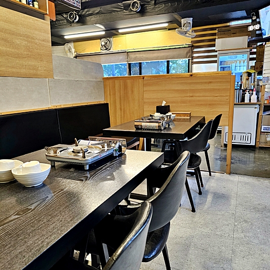 실내는 깔끔하고 편안합니다. 테이블 간격이 넓지는 않지만 가족 단위나 소규모 모임에 적합합니다.