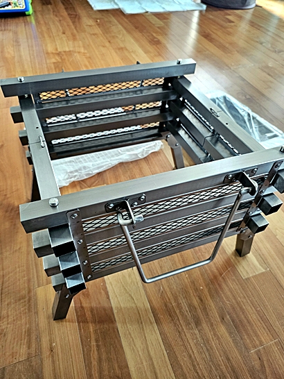 본체는 견고했고, 재받이와 구이망, 전용 수납가방까지 구성되어 있었습니다.
