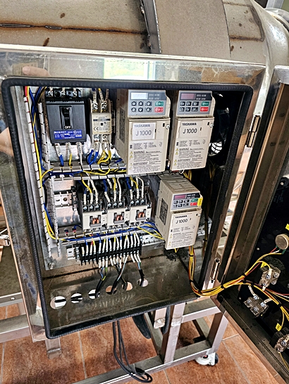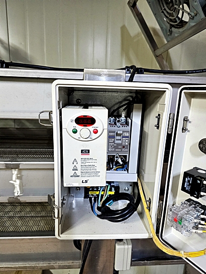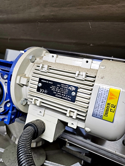 사진에 보이듯 인버터 기반 속도 제어 및 싱글상 전원 인입 등 표준 규격으로 설계되어 식품공정에 적용하기 용이합니다.