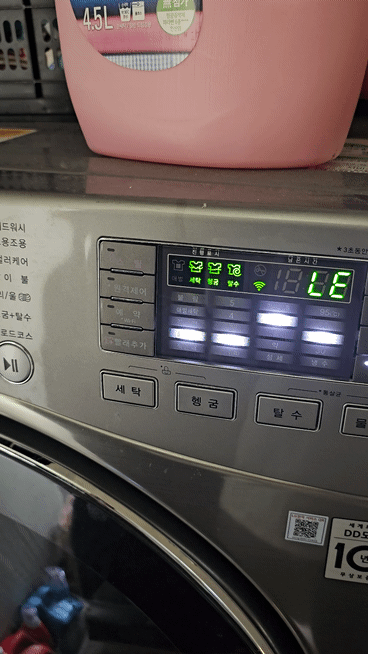 저희 집 세탁기는 탈수 직전에 갑자기 멈추며 "LE" 코드가 떴습니다.