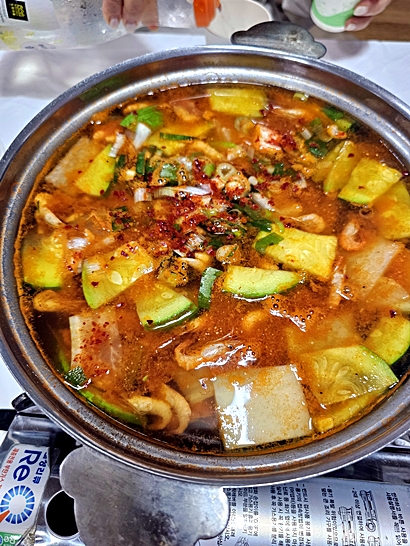새우, 애호박, 버섯, 두부, 파 등이 어우러져 진한 국물 맛이 깔끔하게 마무리돼요.