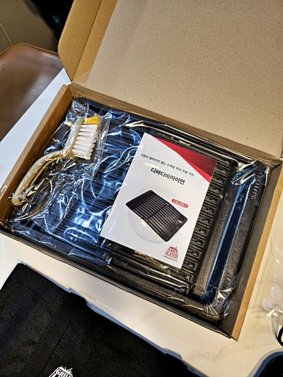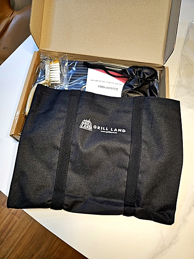 심플한 패키지 안에 무쇠 특유의 질감이 그대로 살아 있는 불판과 사용설명서, 그리고 깔끔한 전용 가방이 들어있어요.