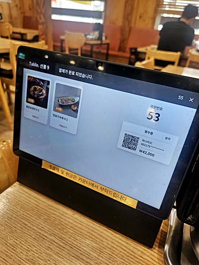 매장 내부에는 테이블 오더 시스템도 준비되어 있어 바로 주문하고 결제까지 편하게 진행할 수 있습니다.