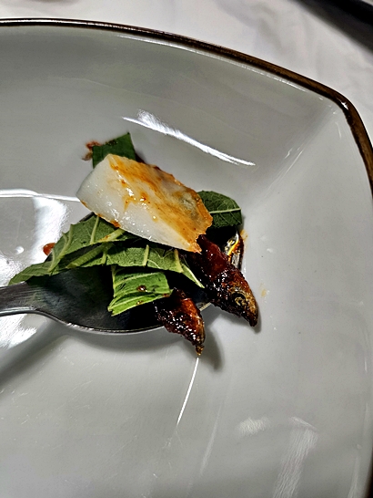 한입 크기로 깻잎에 싸서 먹으면 고소하고 달콤한 양념이 입안 가득 퍼지며,
