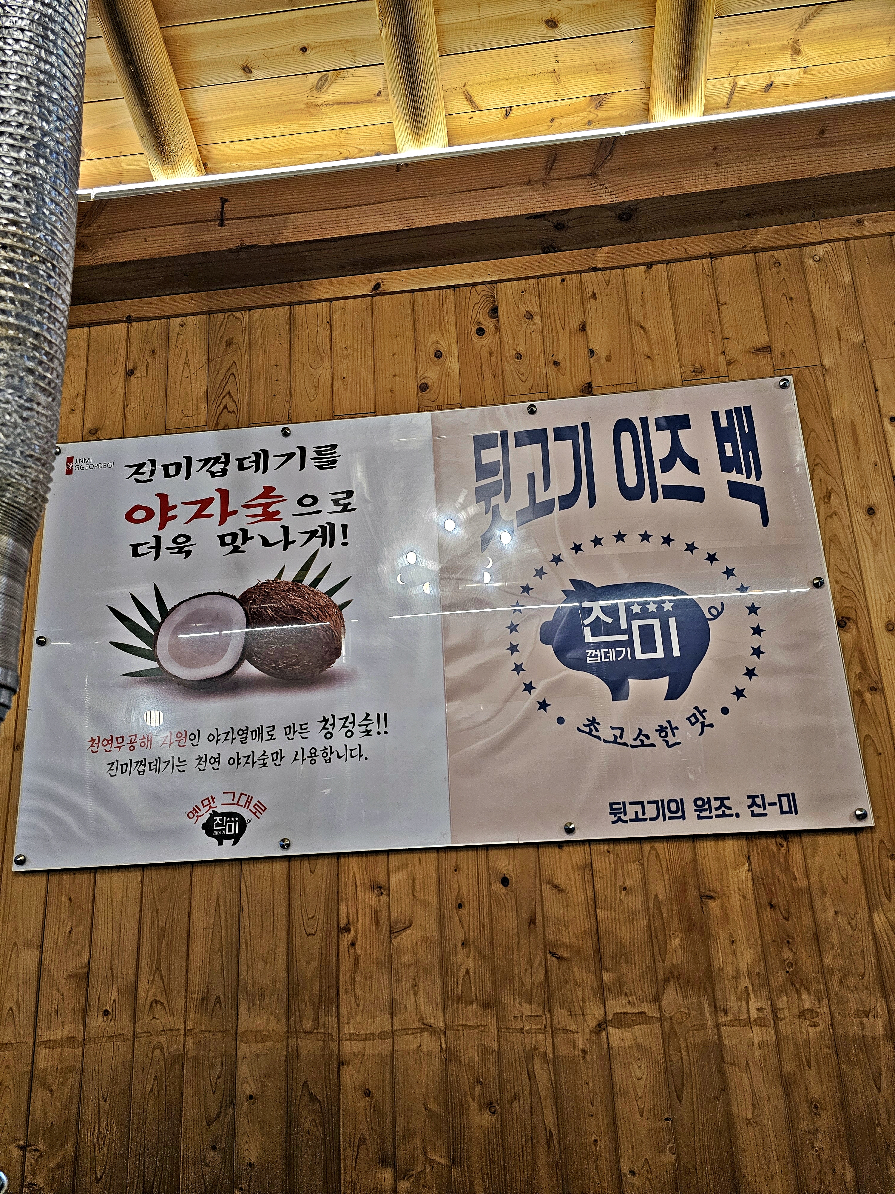 Jinmi Ggopdegi in Saerom-dong, Sejong is our repeat spot for chewy grilled pork skin and back meat over charcoal. My wife and youngest daughter love it, and for two people we order 2 pork-skin plates and 2 back-meat plates. Its good value, with rich flavors and a satisfying crisp-then-bouncy texture. Parking is in the building basement; ask for parking registration at checkout. Typical hours are 5 to 10 pm and Sunday closed, but check before you go. Visit early or after 7:30 pm to avoid waiting.