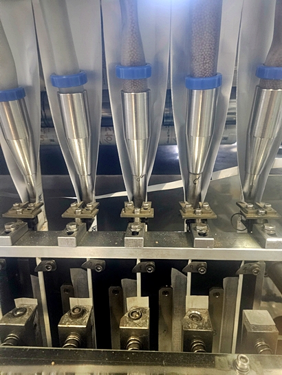 스틱 3면 실링 방식으로 분말과 과립 제품을 다열로 포장하는 장비이며,