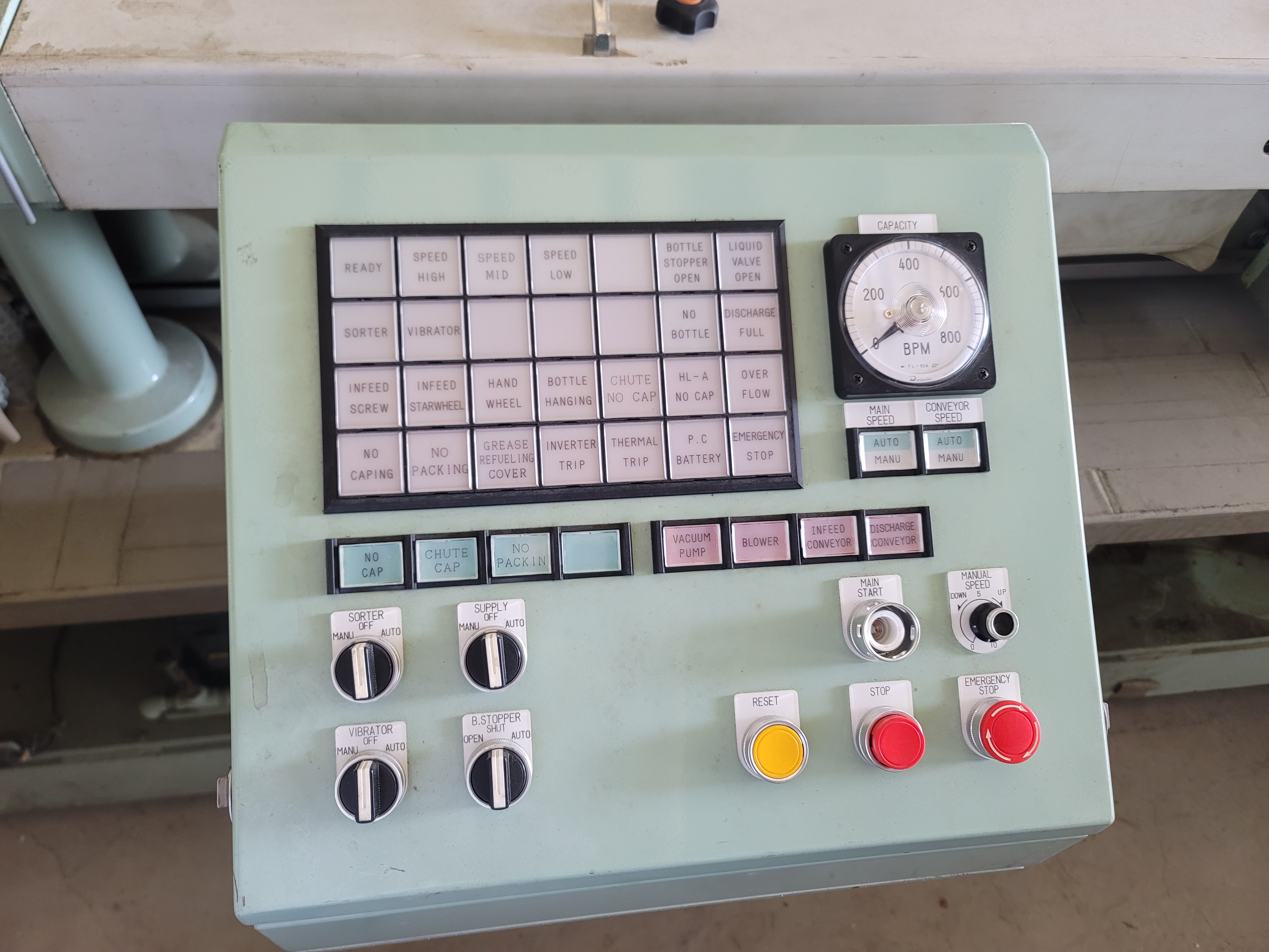 조작 패널 기준으로 글루잉, 글루 펌프, 진공 펌프, 인피드 컨베이어 등이 분리돼 있어 세팅과 점검 포인트가 명확합니다.