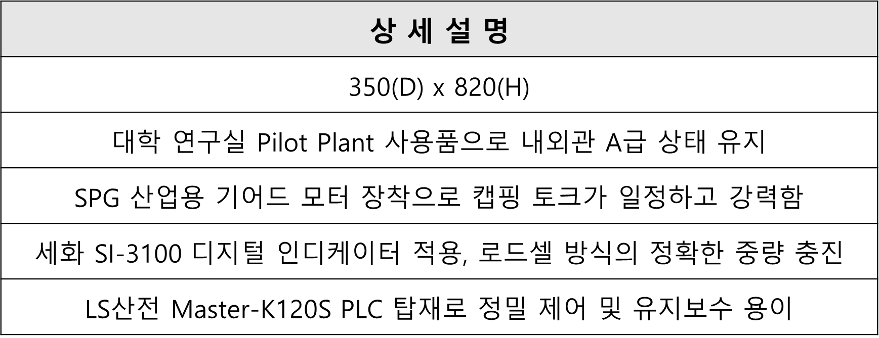 SPG 산업용 기어드 모터가 장착되어 일정한 토크로 캡을 결합해 주며 하단 핸들을 통해