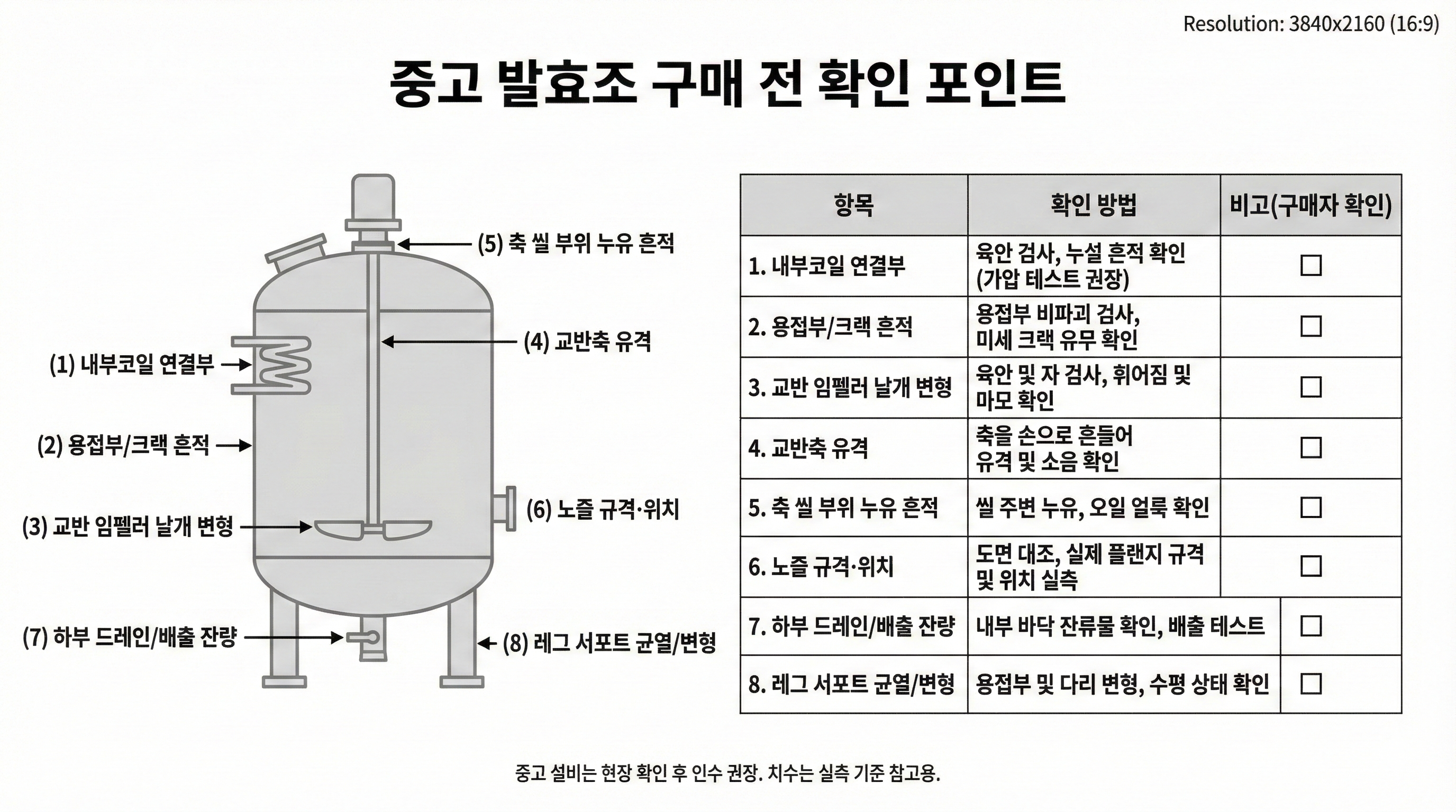 중고 발효조는 구매 전 확인 포인트가 명확합니다.