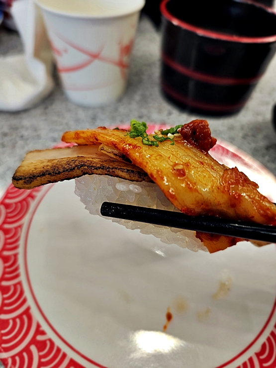 레일이 길게 돌아가서 회전초밥 특유의 리듬이 살아 있고, 테이블 동선도 넓어서 답답함이 덜했습니다.
