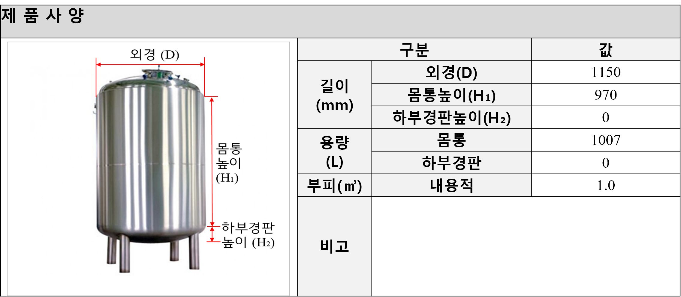 내용적: 1.0 m3 (전체 용량 약 1.5톤 급)