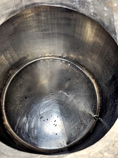 As this is used equipment, there may be small scratches on the surface. However, the main structure is solid and the top manhole seals tightly. We recommend checking the valve and pressure limits of the jacket before use. Since the bottom is flat, it works best for liquids that flow easily.