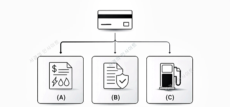 공과금, 4대보험, 주유비 등 매달 고정적으로 나가는 비용이 결제되는 카드를 선택해야 25만원을 가장 빠르게 소진할 수 있습니다.