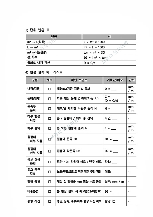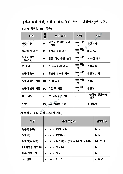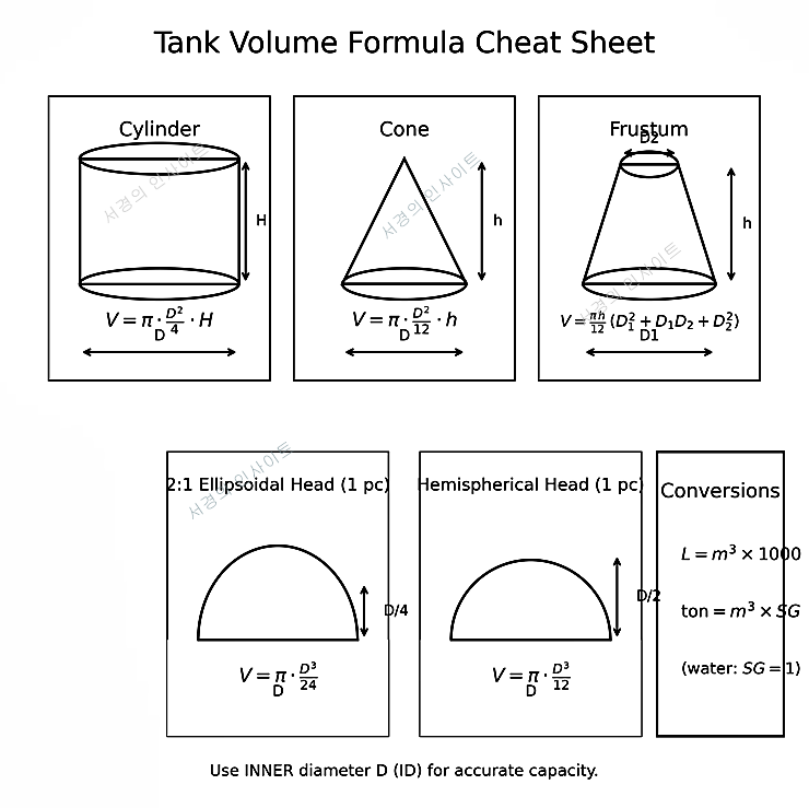 탱크 용량 계산 내경 기준 공식과 체크리스트