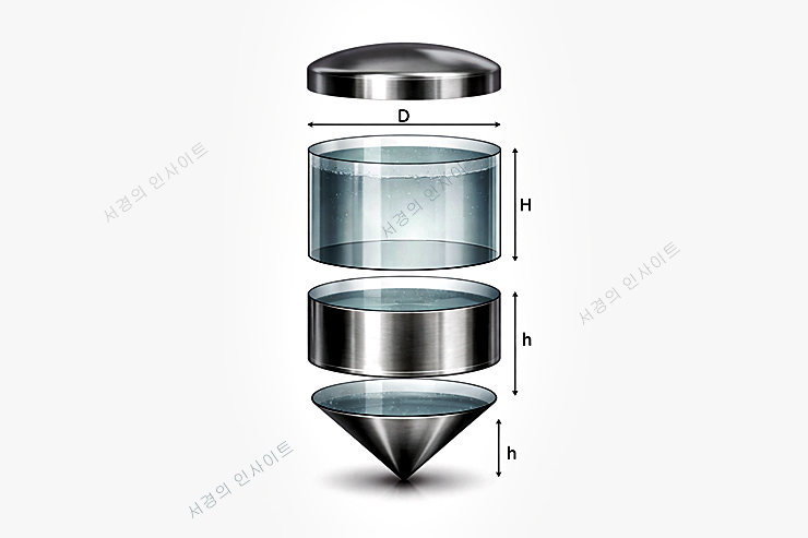 | 원통 + 콘 + 상부 헤드 | Vtotal = V원통 + V콘 + V헤드 |