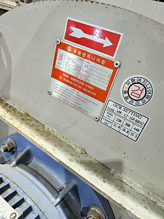 버너 측에는 산업용 HYUNDAI 3상 모터(7.5kW급)가 적용되어 있으며